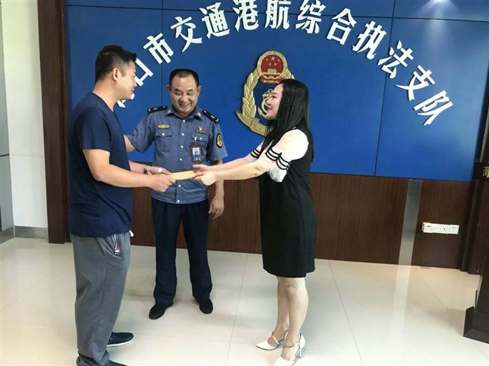 2018年9月27日,田福人力客服經(jīng)理劉金女士前往海口市交通港航綜合執(zhí)法支隊與支隊領導一同對秀英大隊西站林偉斌同