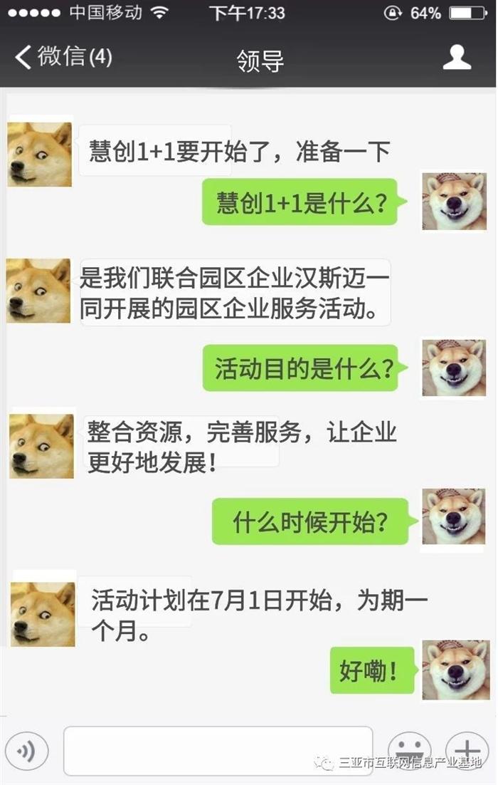 三亞市慧創互聯網信息產業基地運營管理有限公司(以下簡稱市慧創)在科工委的指導下,將聯合園區企業海南漢斯邁企業管理咨詢有限公司(海口田福人力資源有限公司全資子公司)一同開展“慧創1+1”園區服務活動,雙方本著真誠溝通,互信尊重,積極踐行,共同成長的工作原則,進行園區服務平臺優化,旨在通過更加及時、高效的方式提供完善、具有差異化的企業服務,為企業的生存、發展提供更加有利的保障。通過此次活動,市慧創將攜手漢斯邁走進入園企業,采集企業的基本信息,了解企業的需求,傾聽企業的意見,更加深入了解企業的運營現狀與需求,并針對存在的困難實施精準服務,幫助企業在園區內外進行宣傳推廣,讓所有園區的企業通過“慧創1+1”活動,能夠更多的了解彼此,實現資源聯動,拉手前行,發揮1+1>2的效果!