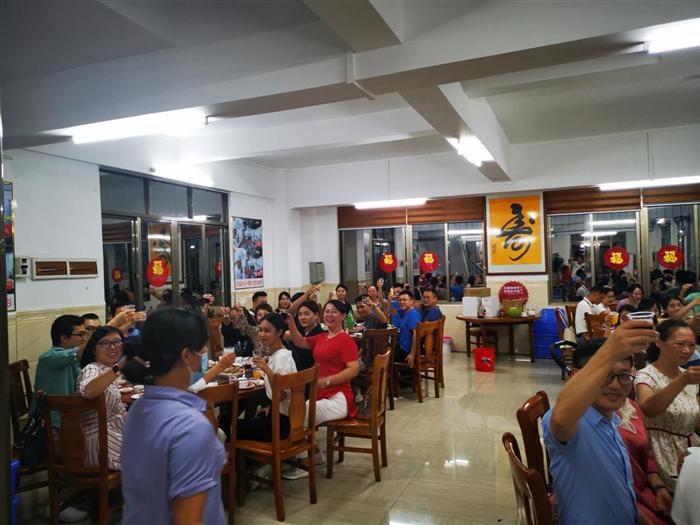 2020年7月3日晚,鼎邦泰信海南區(qū)域員工在瓊海市博鰲鎮(zhèn)一并聚餐,并為本年第二季度的壽星員工一同慶祝生日。品嘗了博鰲的當(dāng)?shù)孛朗澈螅蠹彝嫫鹆藧鄣哪ЯD(zhuǎn)圈圈、筷子傳杯子、聽指令搶飲料三個游戲,歡樂的游戲環(huán)節(jié)將場內(nèi)的氣氛推向了高潮。