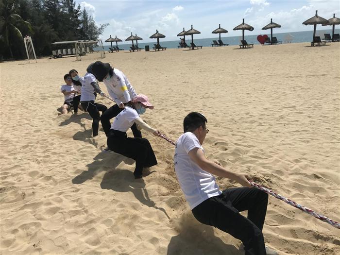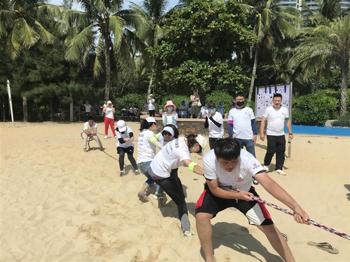 活動開始前,各隊(duì)共同設(shè)計(jì)了隊(duì)名、隊(duì)旗、口號,并展示了各自的風(fēng)采,緊接著拓展活動正式開始了。本次拓展活動進(jìn)行了拔河比賽、三人四足接力賽、尋寶并撕名牌和腦筋急轉(zhuǎn)彎幾項(xiàng)游戲,雖然當(dāng)天氣溫較高,戶外烈日炎炎,但也擋不住員工們踴躍參與的熱情,現(xiàn)場充滿歡聲笑語,氣氛十分熱烈。
