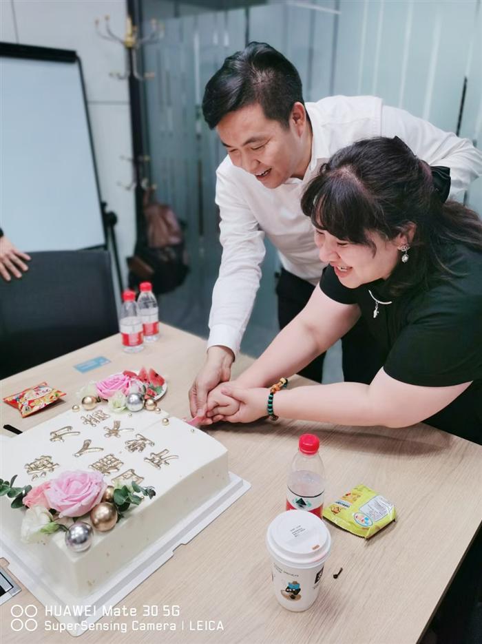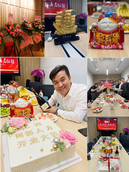 陳海平董事長、Queena Qi女士祝賀詞并切開業蛋糕。大家共同舉杯,祝賀上海田福開業大吉,事業蒸蒸日上,再起征程。