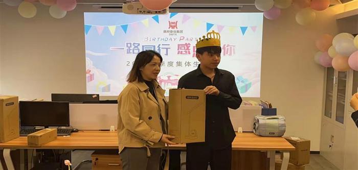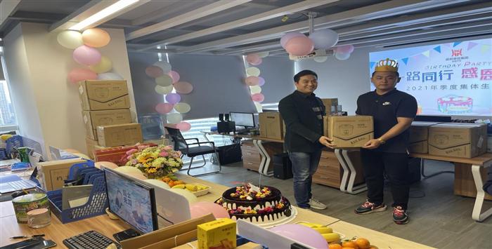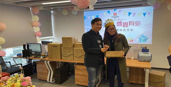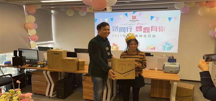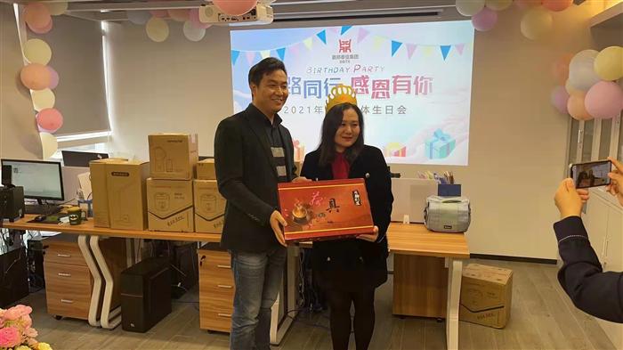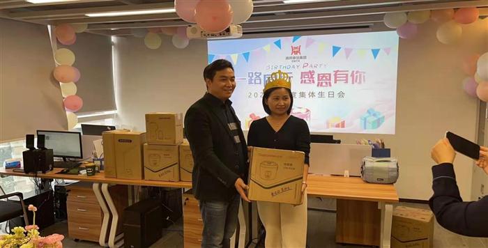 吳宜亭總經(jīng)理依次為海南快幫的壽星派發(fā)生日禮物