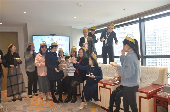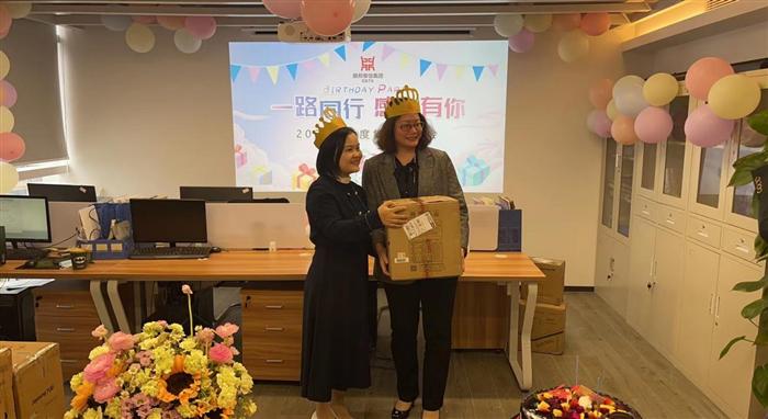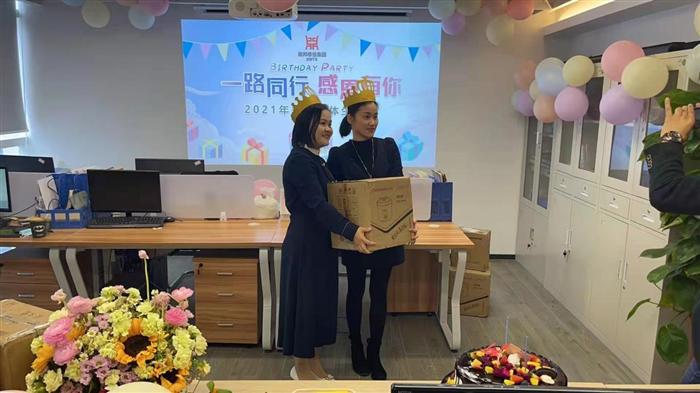 符麗總經(jīng)理依次為海南漢斯邁的壽星派發(fā)生日禮物