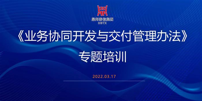 為有效促進各產業板塊協同發展,相互賦能,在各產業領域把業務做深、做專、做精、做扎實的同時,激勵全員協同開發,為客戶提供更全面、更專業、更高價值的服務,打造集團核心競爭力。2022年3月17日,鼎邦泰信集團組織全體員工參加《業務協同開發與交付管理辦法》主題培訓。